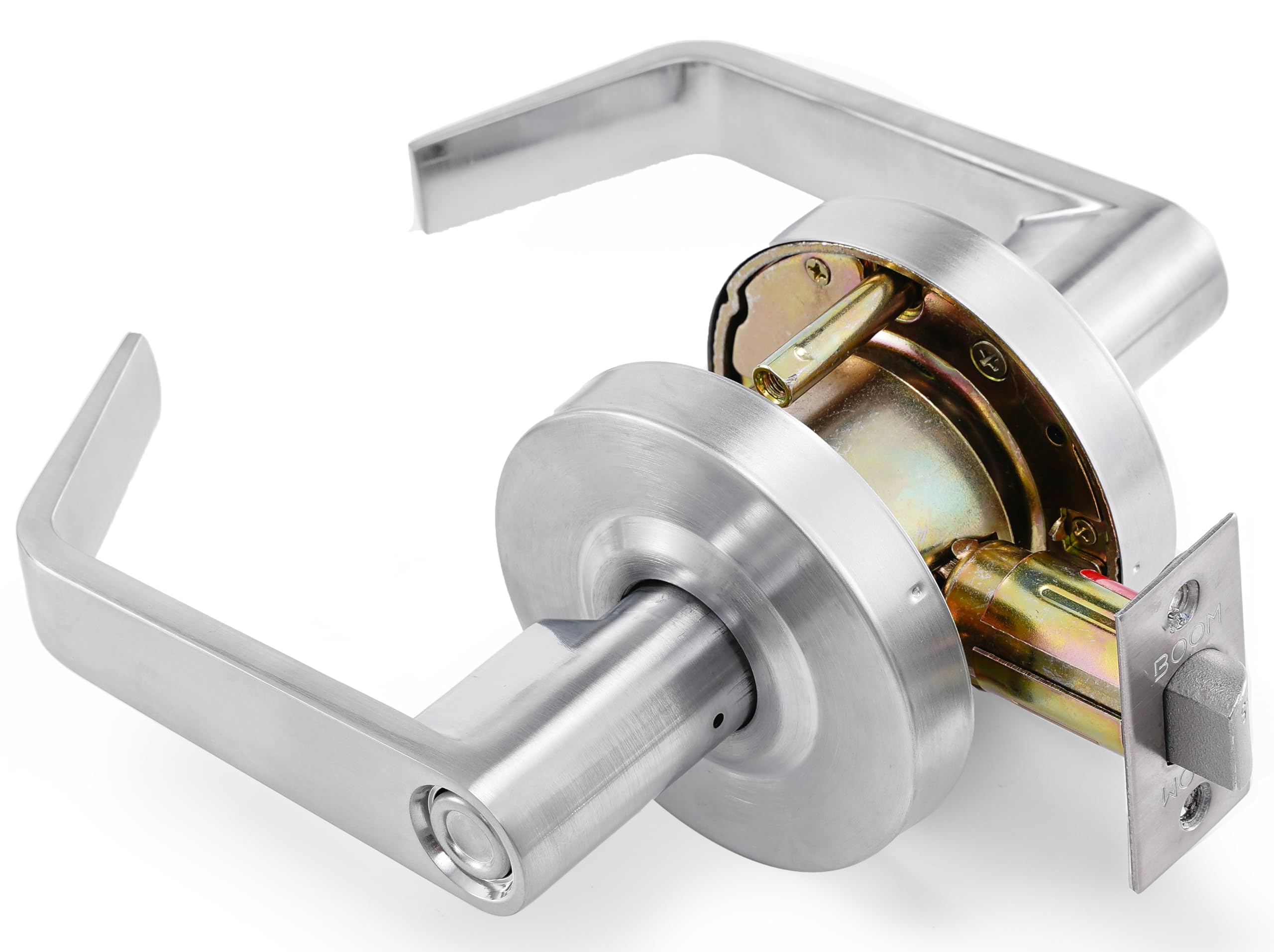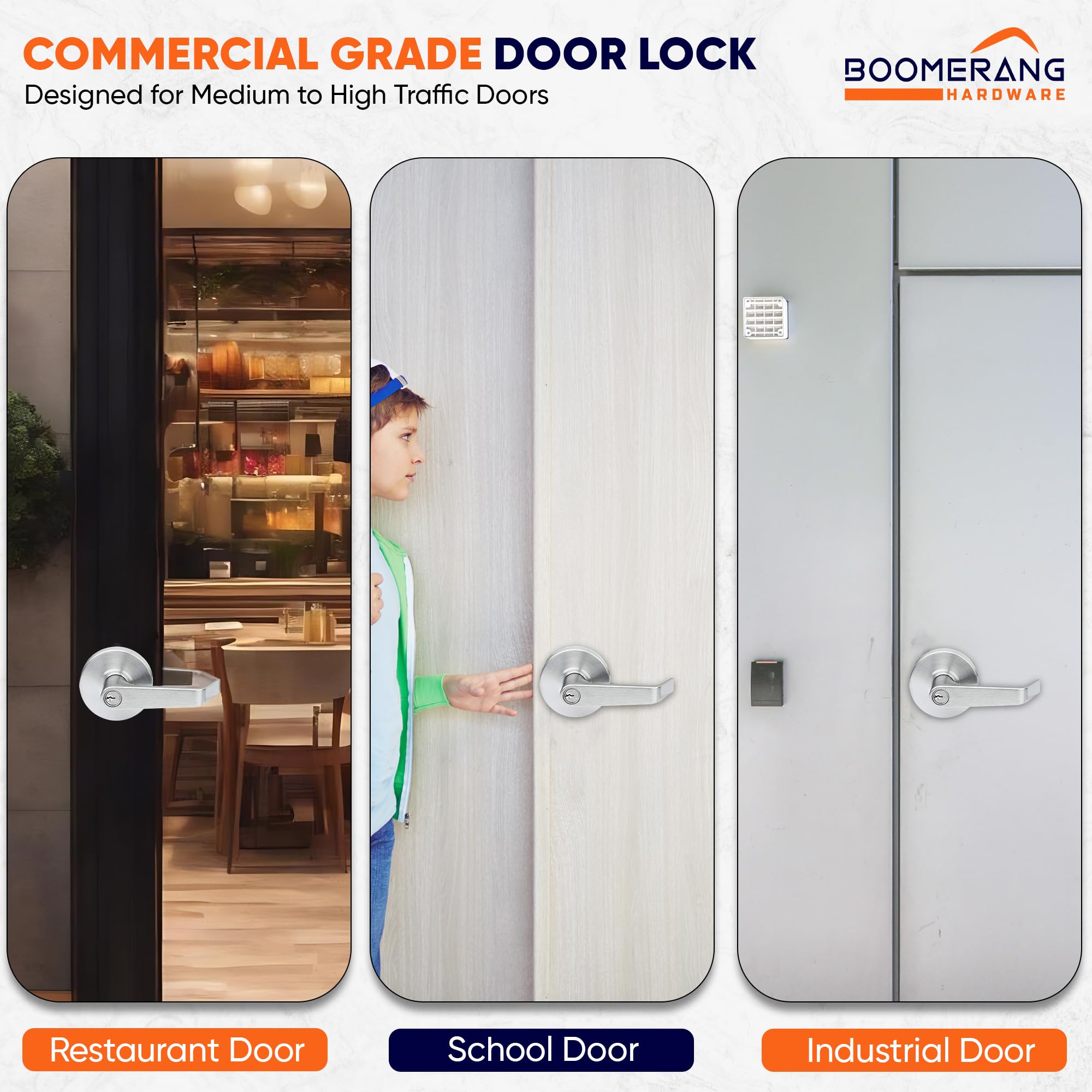 Entry Function - ADA Commercial Door Lever Lock - Boomerang Hdwe Heavy-Duty Locking Handle, Cylindrical Lever Lock, Non-Handed Grade 2 Handle, Satin Chrome, Entrance/Keylock
