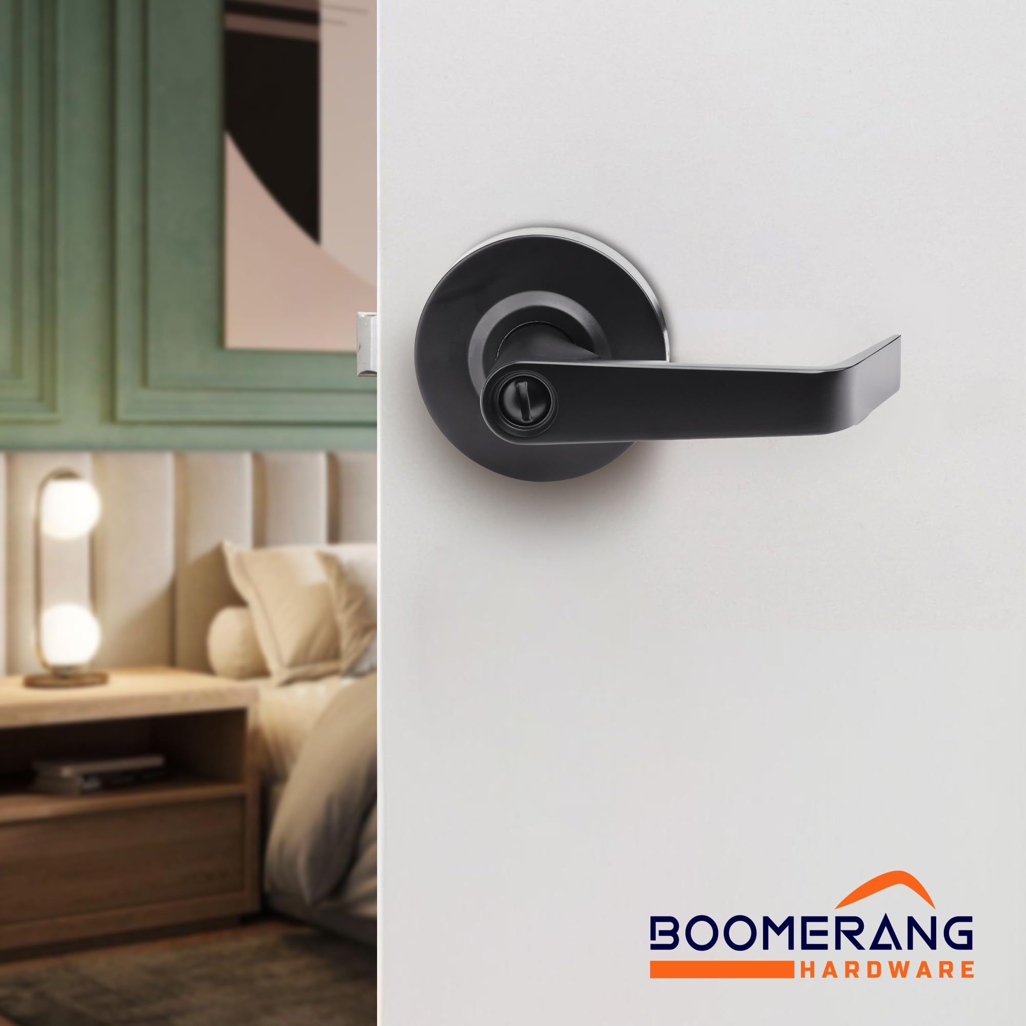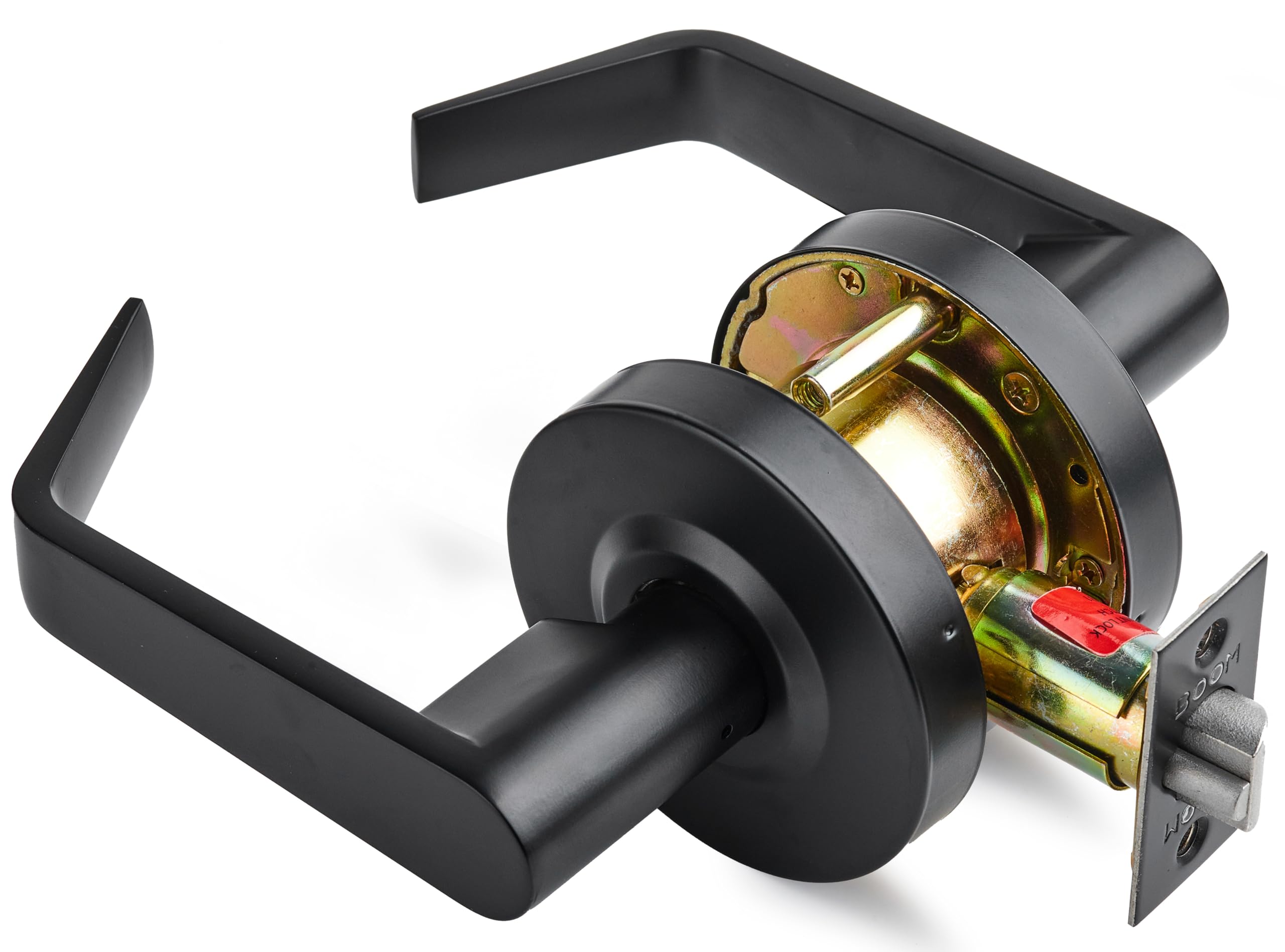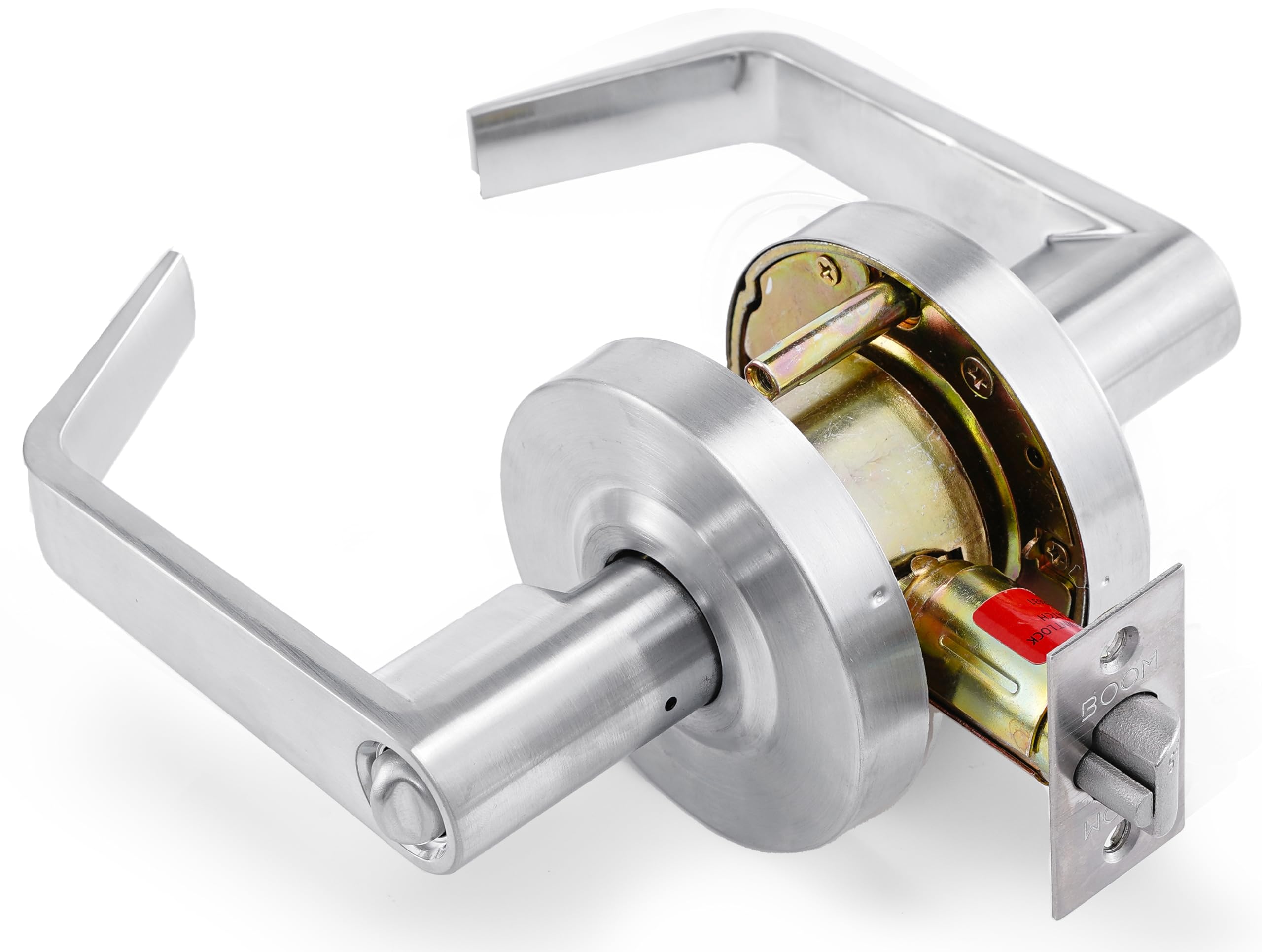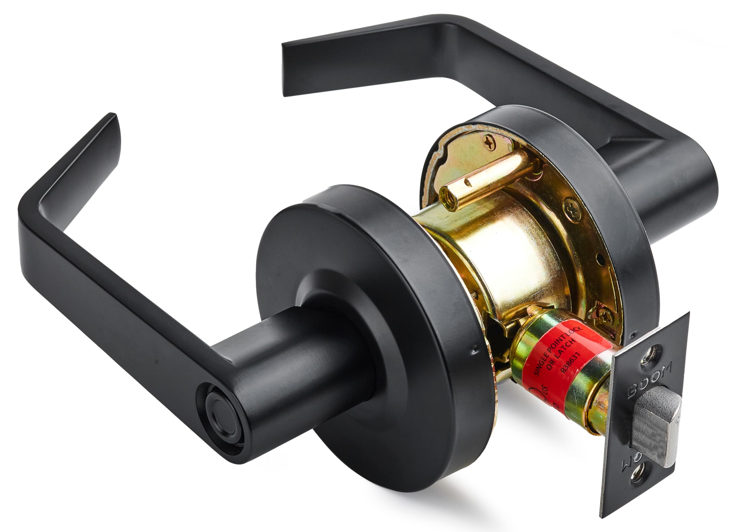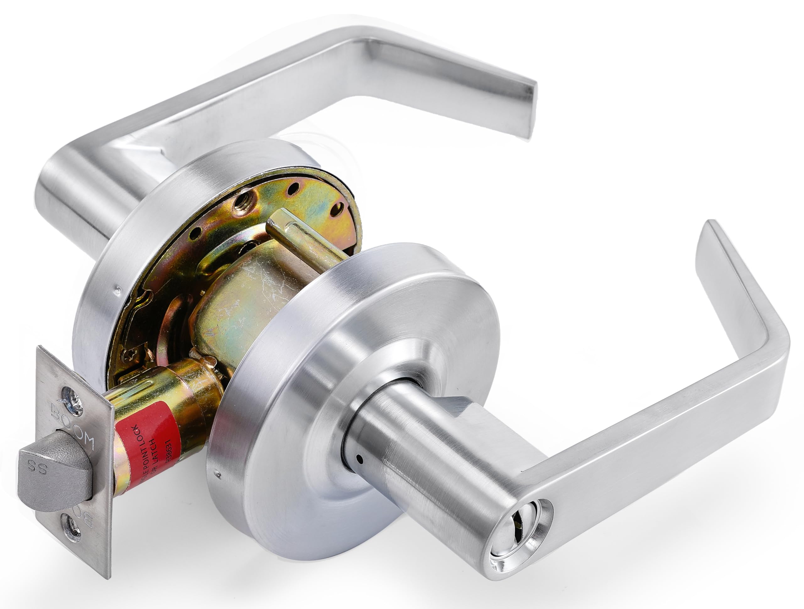 WHAT'S IN A BOX: Each box Boomerang Hardware lever door handle locks includes 1 cylindrical lockset, screws and bolts, user-friendly instructions, 1 ANSI strike, 1 reversible latch unit. The keyed locking functions (Entry, Classroom and Storeroom) include 2 pre-cut keys (C-Keyway (6 pin cylinder) that are re-keyable. The heavy-duty door closer features cold-rolled steel, machined and threaded hubs, and locking nuts to securely bolt the chassis to the door, thereby preventing loosening of the lockset even with hundreds of uses per day.