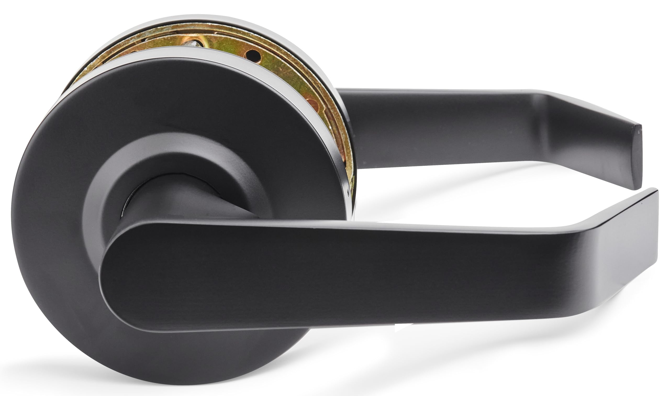 COLOR & SIZING: Our commercial door locks are offered in Satin chrome (US26D) and Matte Black (US19) finishes. Designed for 1-3/8" to 1-3/4" (35mm to 44mm) doors, but they fit 1-3/8" to 2" thick doors and come standard with a 2-3/4" backset (Optional 2-3/8" available, please call) These are non-handed locks for commercial door levers, so they are suitable for either right- or left-handed doors.