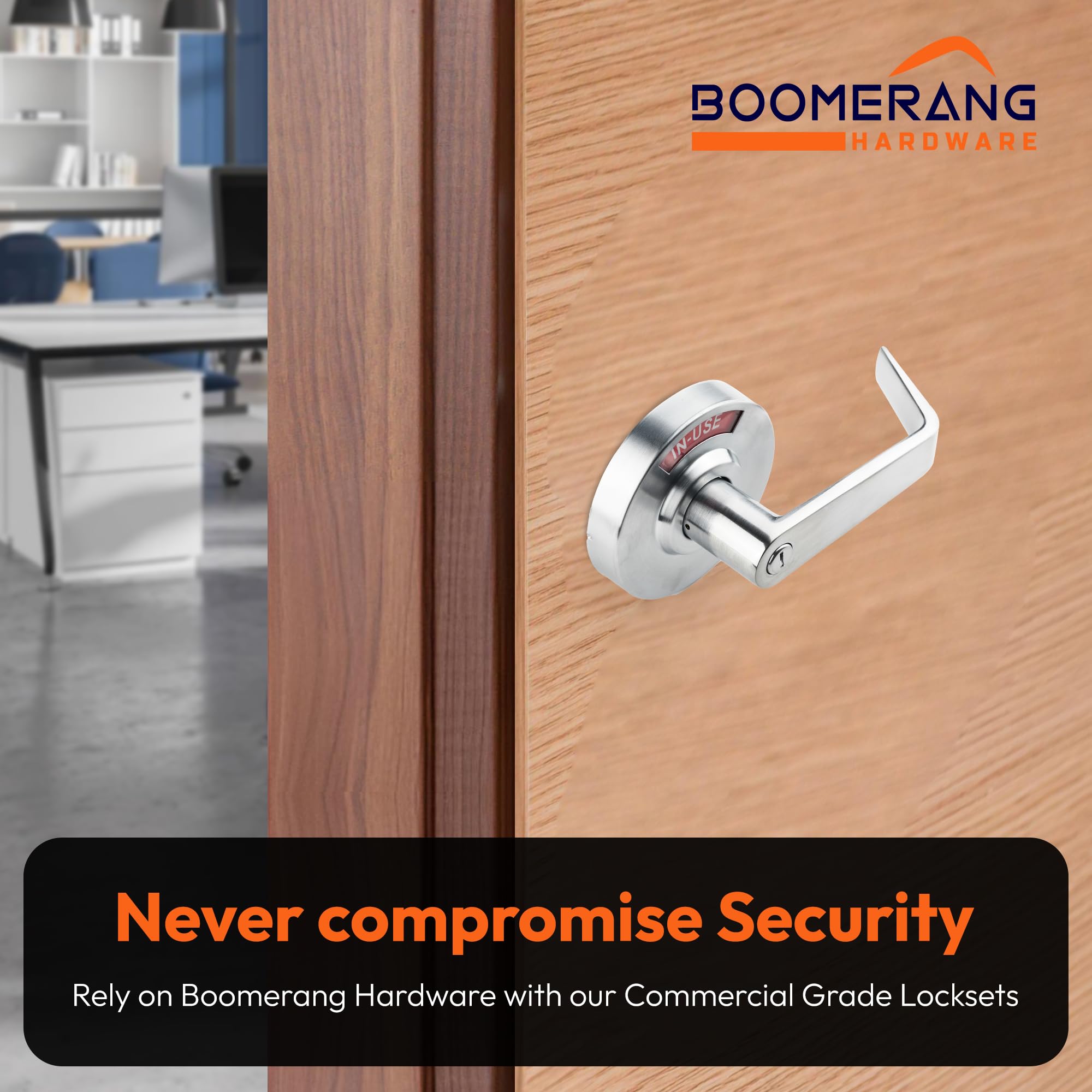 Medium/Heavy Duty Designer Boomerang Hdwe Commercial Lever Door Lock (Bathroom Privacy w/Indicator) Non-Handed, Grade 2 Industrial Door Handle for Restroom, Satin Chrome (US26D)